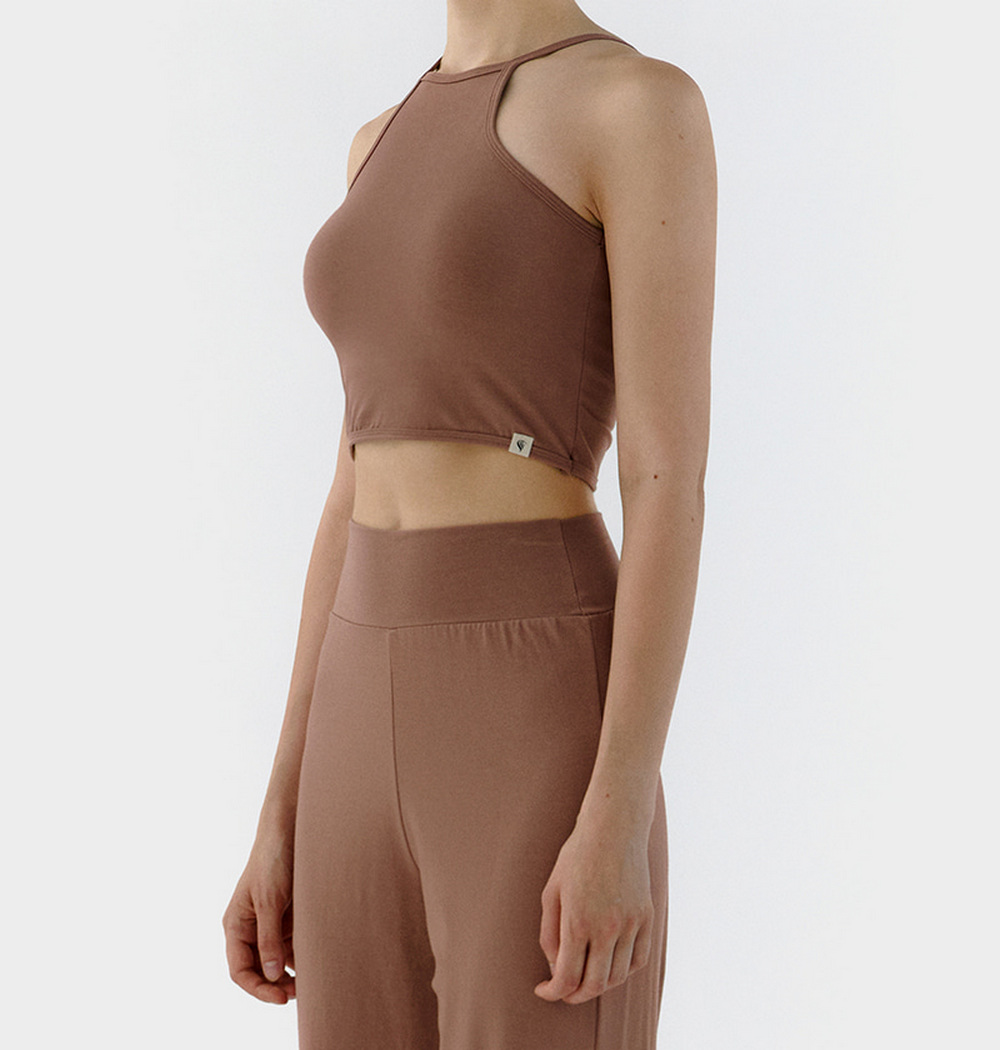 Conchwear 幕斯棉 瑜珈吊帶胸墊短背心 粉磚啡 CON032BRN