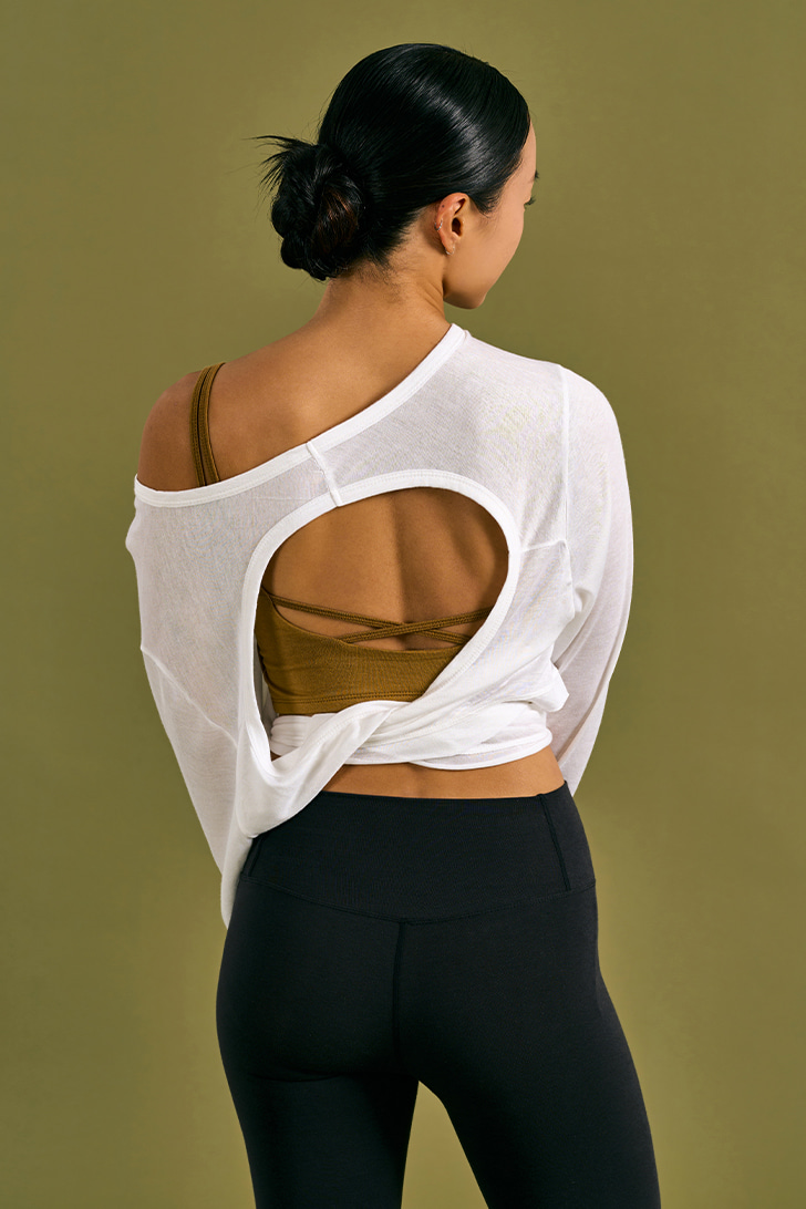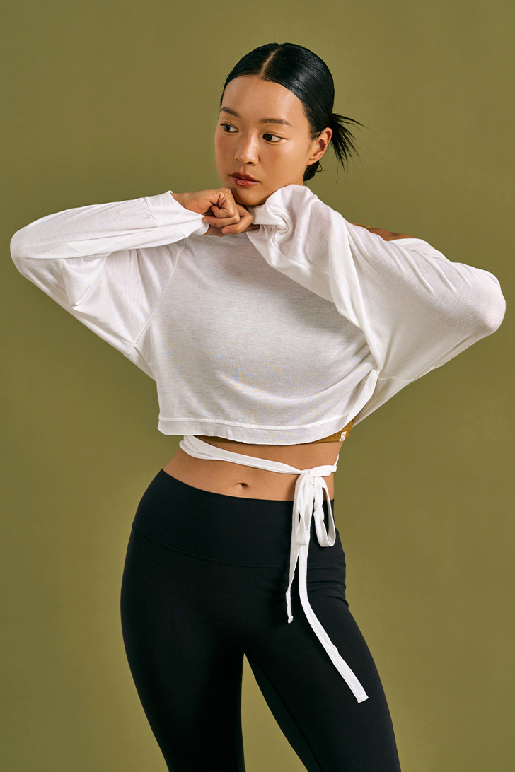 Dhyani 面紗造型綁帶長袖罩衫 白色 CON140WHT