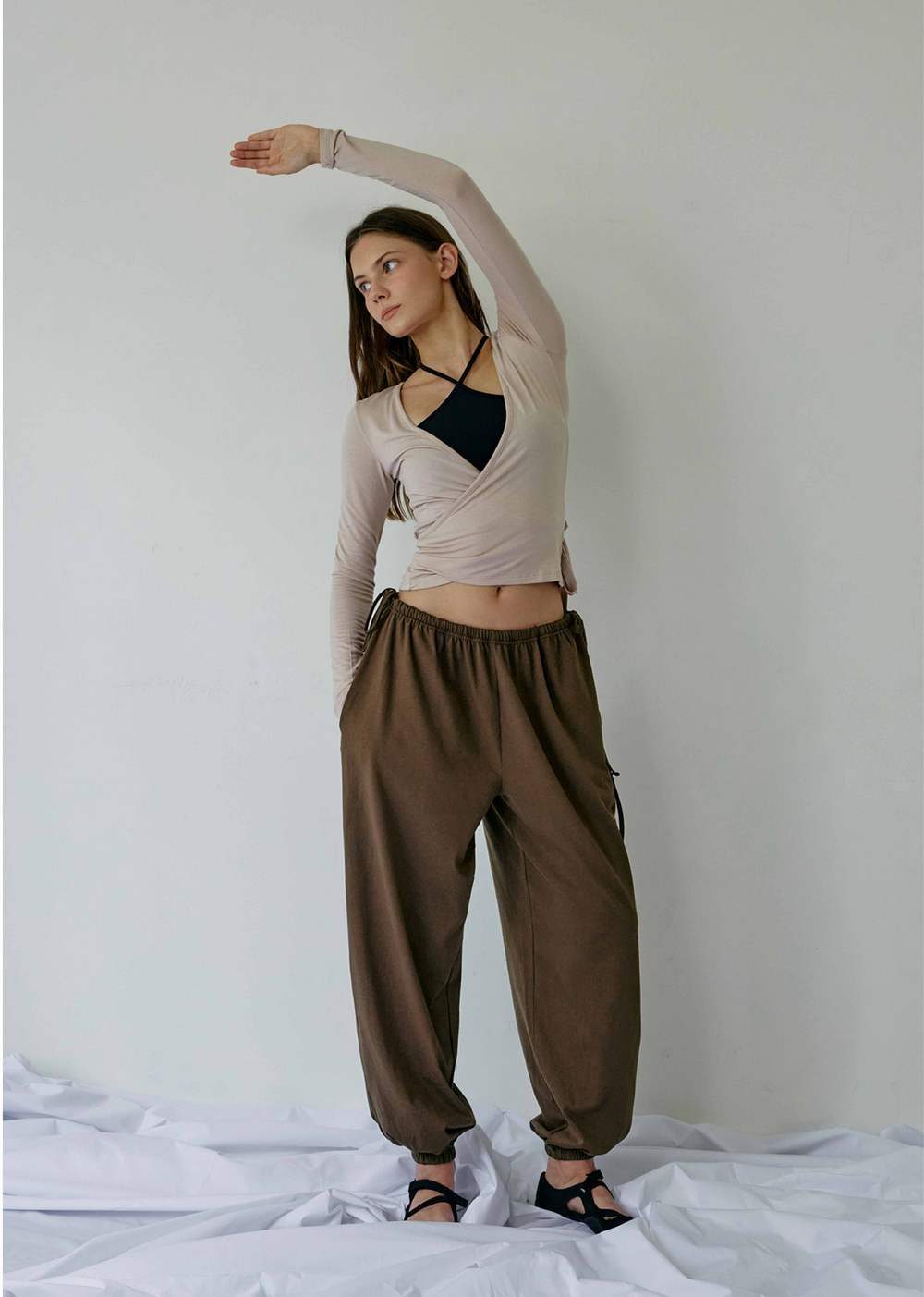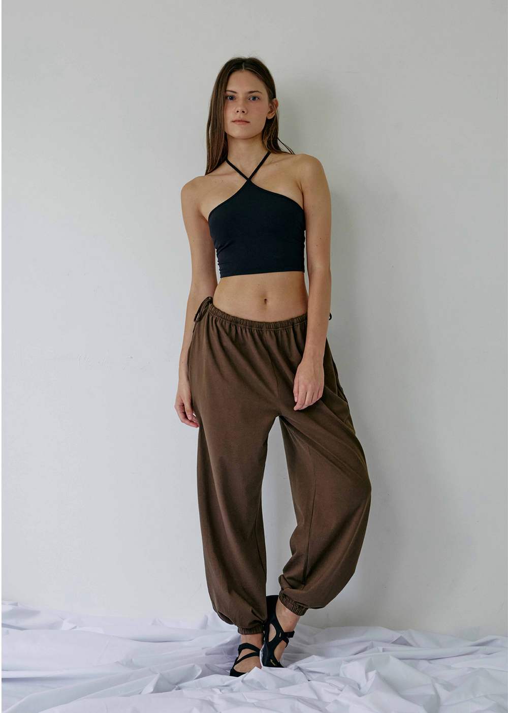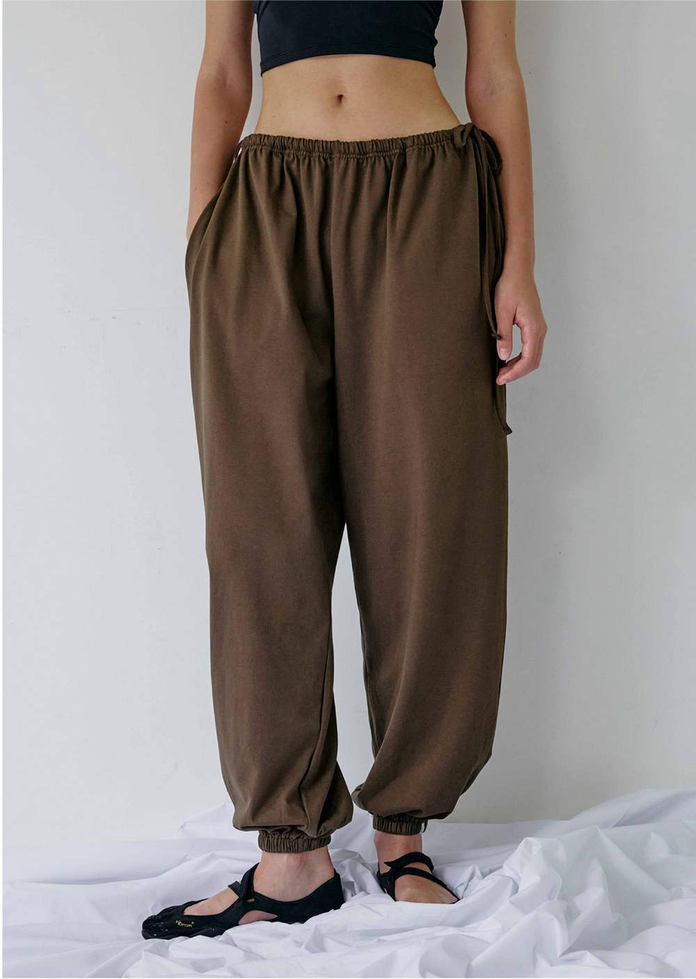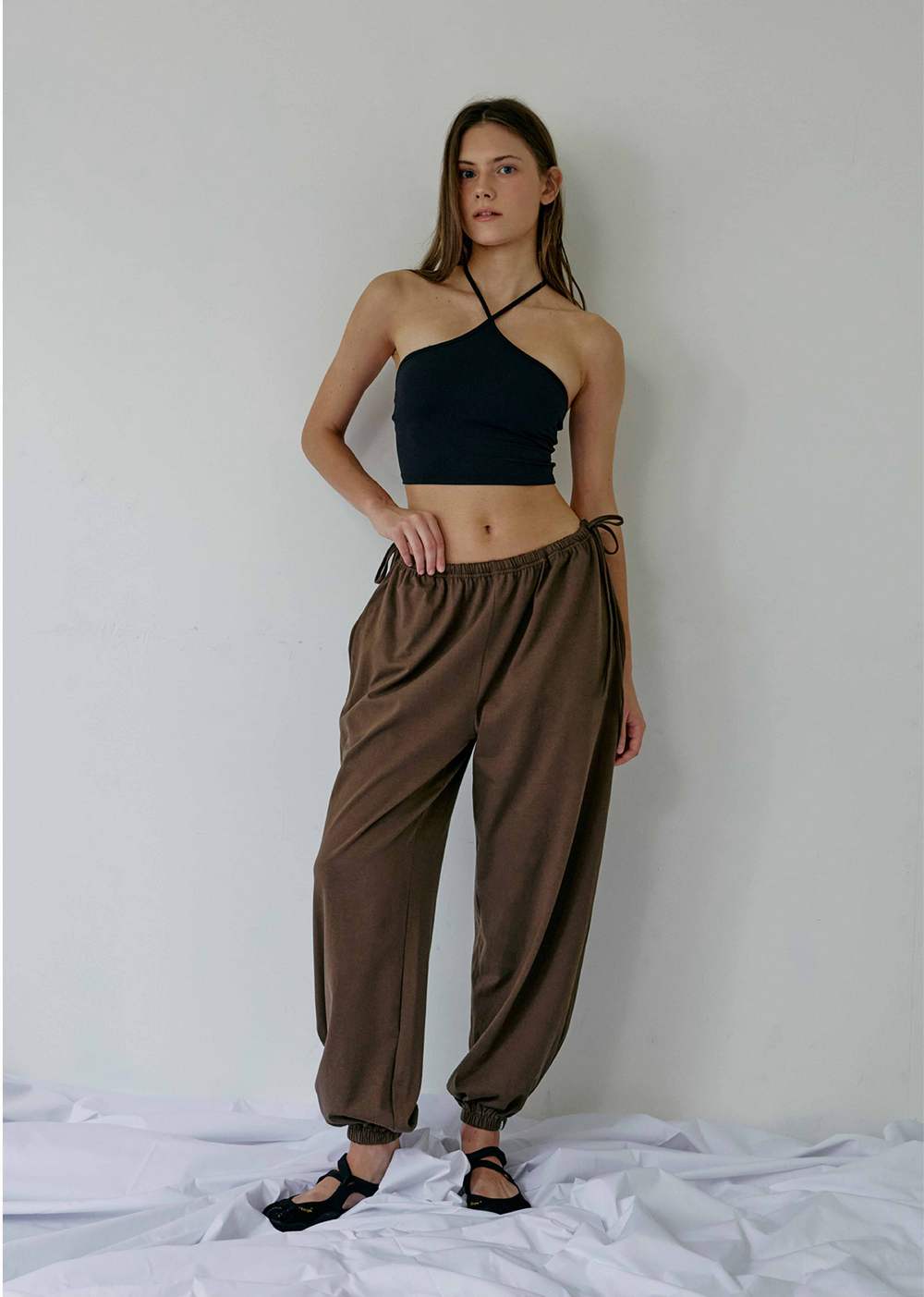 Conchwear 抽繩造型束腳寬褲 深棕 CON134BRN